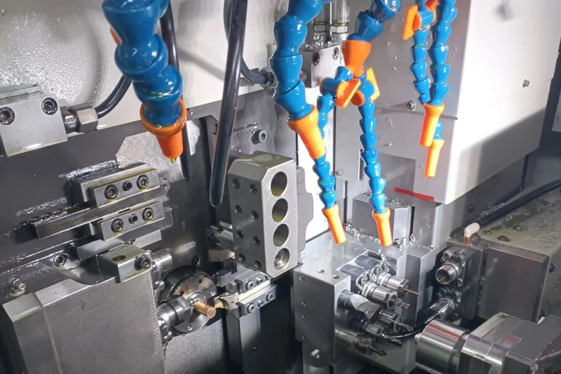 Многоосевой токарный станок: Помимо шпинделя, имеет несколько вспомогательных осей для выполнения более сложной обработки.